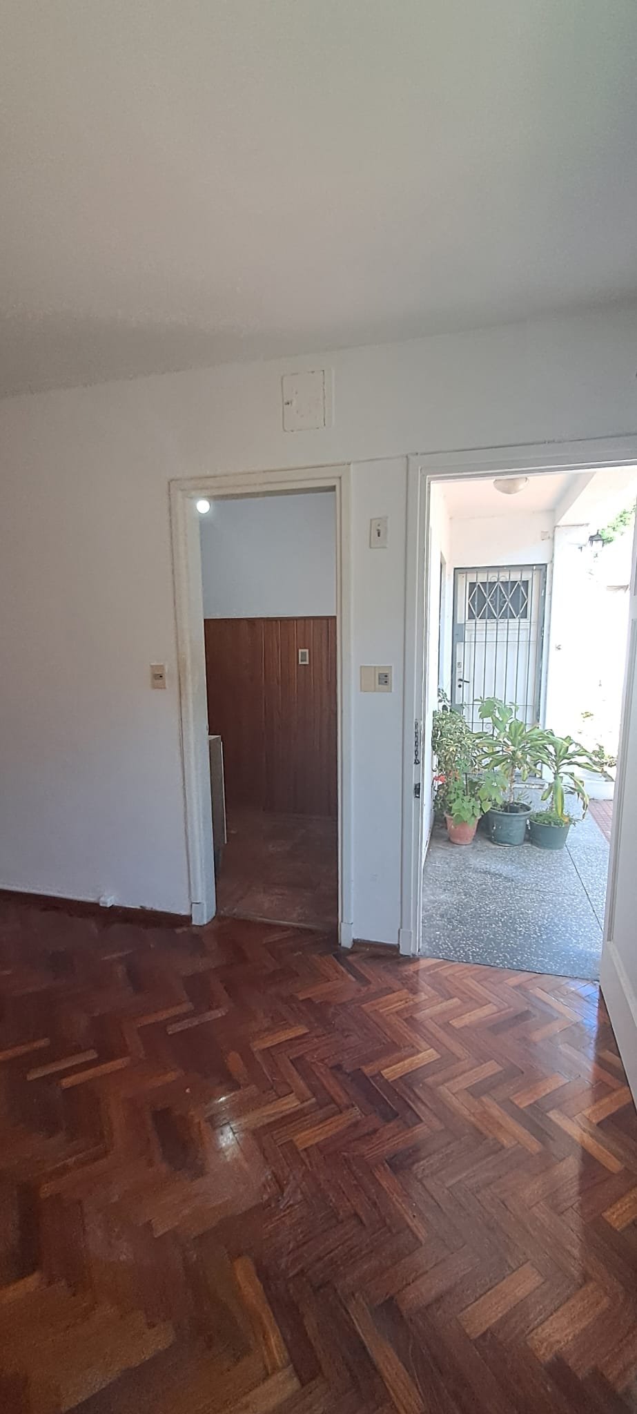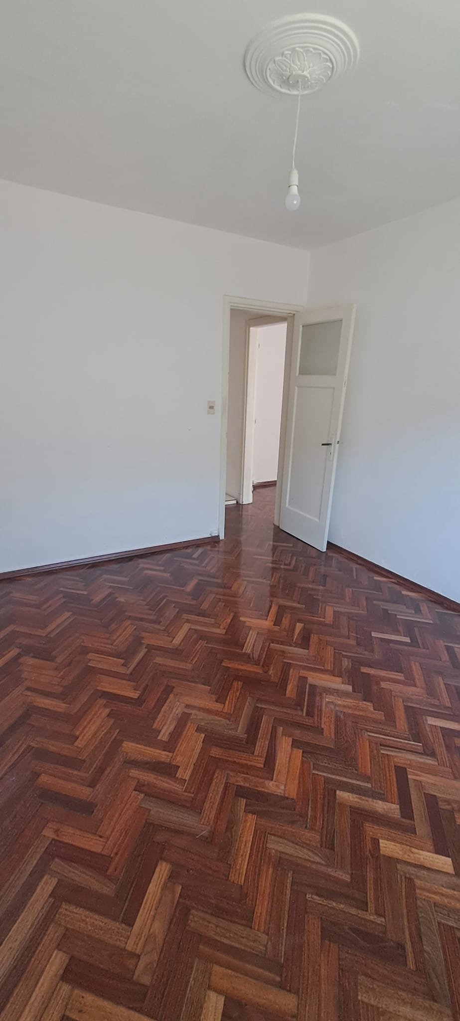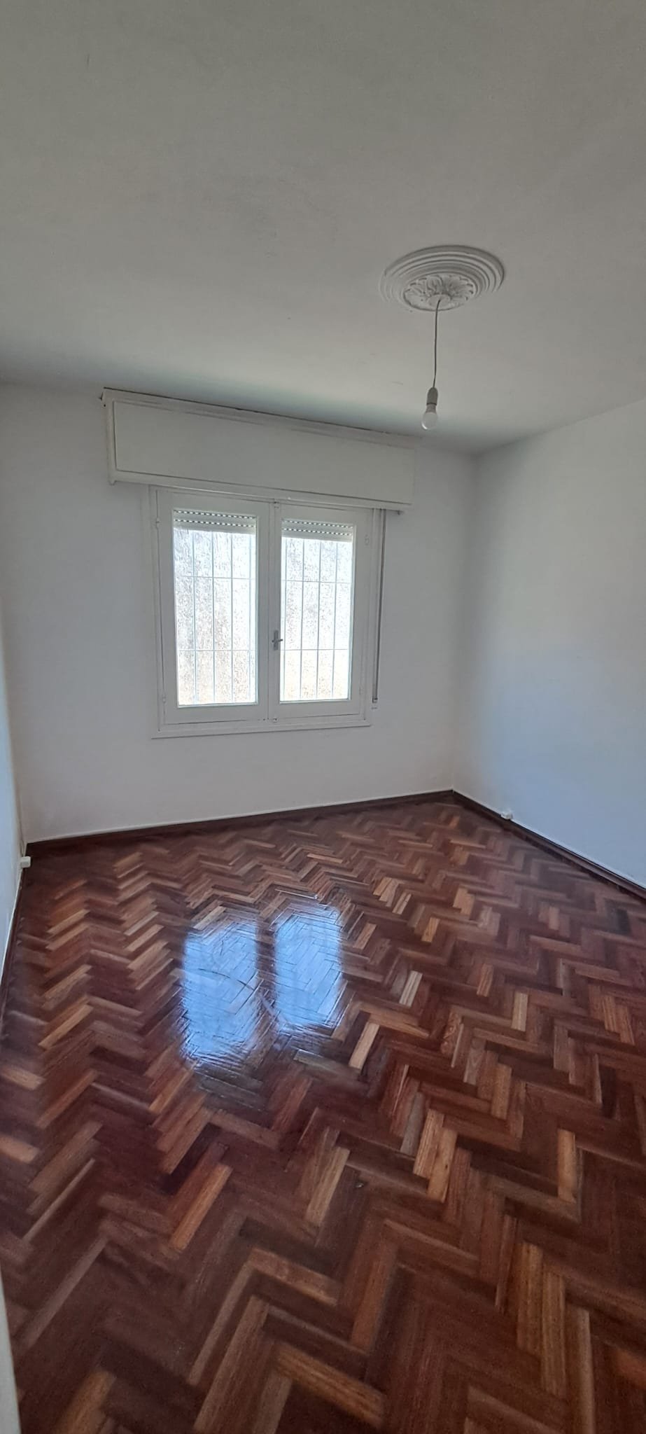 El dormitorio, al igual que el living, mantiene la calidad de los pisos de parquet y cuenta con amplia ventana con persiana y rejas, asegurando confort y seguridad.