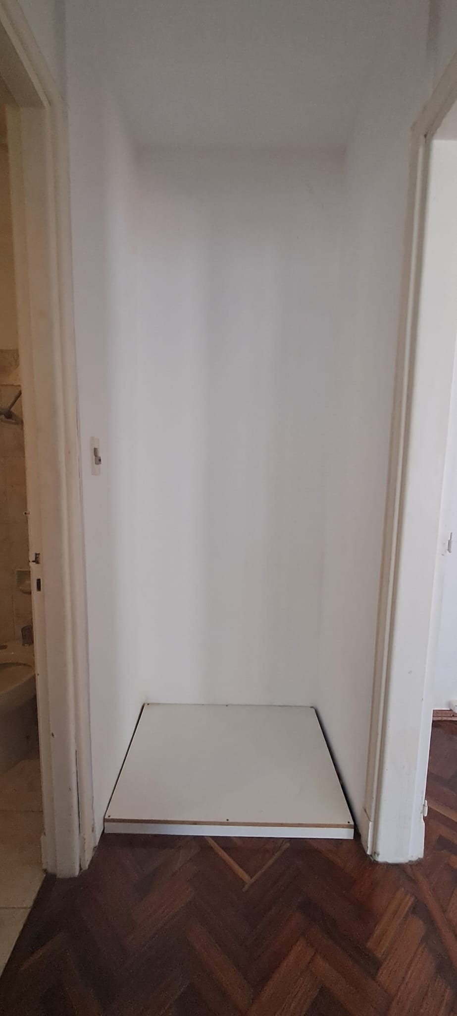 El ingreso es a través de una puerta de madera hacia un cómodo living (de aprox. 5.5 x 3.5 mts). Este ambiente destaca por sus pisos de parquet plastificados en estado impecable y recibe mucha luz mediante una ventana amplia con persiana y rejas. A continuación, un espacio de distribución funcional ofrece el lugar ideal para colocar un mueble de guardado o estantería.